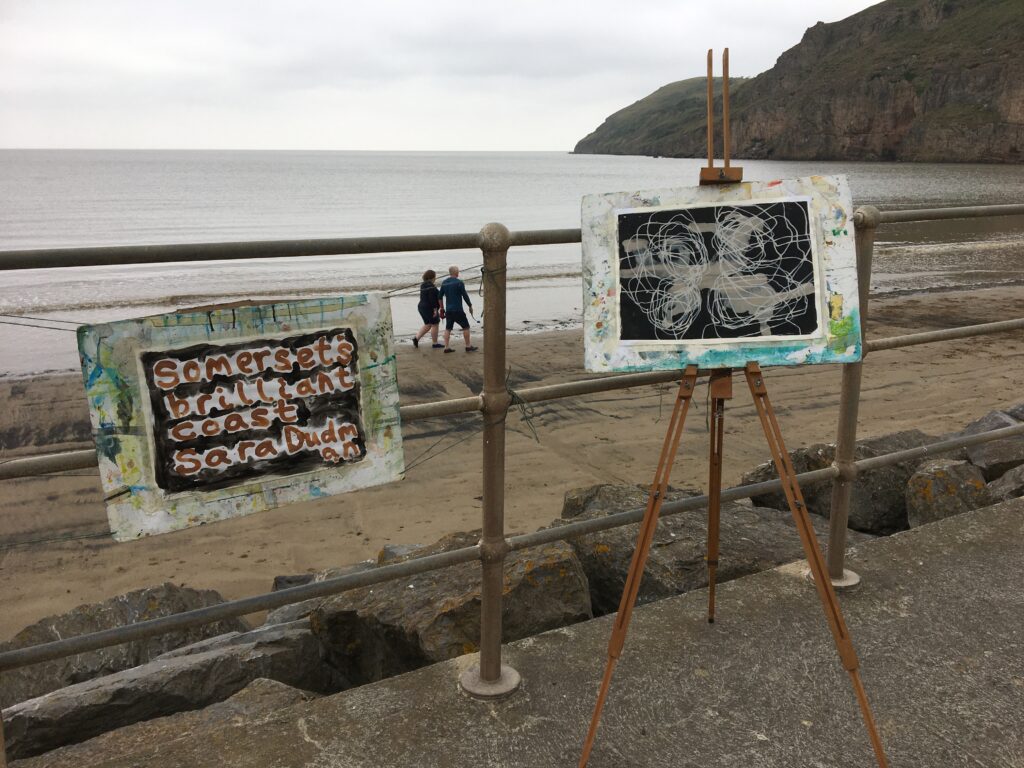 I embarked upon a ‘sporadic, nomadic residency’ along the Somerset coast, to test the efficacy of my work. Covid-19 lockdowns cut-short my plan to work my way along the coast, inviting questions, playful encounters and practical daubings with mud paints with willing beach visitors. The conversations, surprises and social interactions stimulated by the paintings and their process synthesised with my own studio-based experiments to help shape the works.